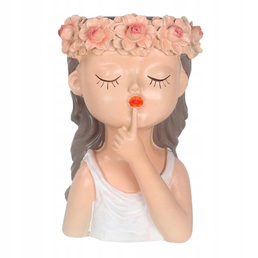 Urocza sadzarka w kształcie dziewczyny ma otwór drenażowy do odprowadzania nadmiaru wody, ochrony zdrowej rośliny.