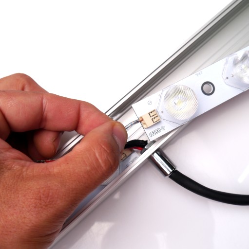 Przewód w profilu będzie zamontowany na środku, tak jak to widać na zdjęciach powyżej i poniżej. Dzięki takiemu umieszczeniu kabla lampa będzie bardziej stabilna.