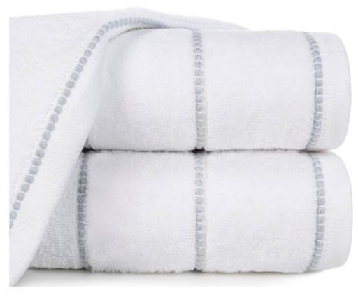 To praktyczny i piękny dodatek pasujący do każdej łazienki. Jednolite barwy ręczników podkreślone miękką welurową bordiurą. Wysoka gramatura sprawia, że ręcznik jest puszysty, dzięki czemu szybko wchłania wodę, delikatnie i szybko osuszając mokre ciało po kąpieli.