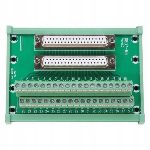 Cechy: 1. 100% nowy i wysokiej jakości. 2. Małe ciało i duże możliwości zastosowania. 3. Ta płyta jest łatwa do podłączenia. 4. Konstrukcja jest regularna, a umieszczona na niej etykieta ułatwia podłączenie. 5. Jest to element elektroniczny do podłączenia elektrycznego. Specyfikacja: Stan: 100% nowy Model: DB37-M6 Waga: ok. 248 g / 8,7 uncji Rozmiar: ok. 118 * 87 * 51 mm / 4,7 * 3,4 * 2,0 cala Lista pakietów: 1 * Szyna DIN DB37