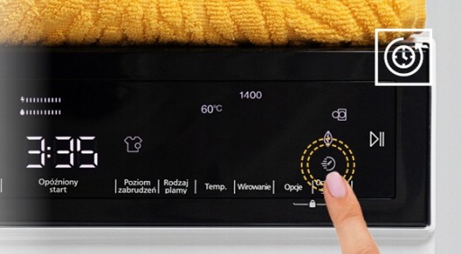 Dzięki głębokości 58,2 cm pralka posiada aż 9 kg maksymalnego załadunku. Duża pojemność bębna pozwala prać większe ilości prania jednocześnie. Dzięki temu oszczędzamy wodę, energię elektryczną, a co za tym idzie czas i pieniądze. Pralka poradzi sobie nie tylko z praniem dużej rodziny, ale również pomieści koce, poduszki czy kurtki zimowe. Zastosowanie drzwi typu Giant Door o średnicy 510 mm i duży otwór załadunkowy ułatwia załadunek bębna. Wszystko po to, aby jak najbardziej ułatwić i uprzyjemnić Ci robienie prania.