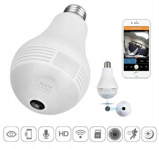 KAMERA WiFi IP MONITORING W ŻARÓWCE 360 AUDIO LED