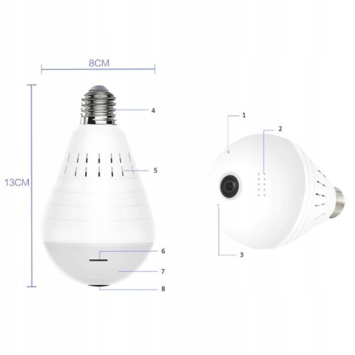 IP-КАМЕРА МОНИТОРИНГА WiFi В СВЕТОДИОДНОЙ ЛАМПОЧКЕ 360° АУДИО