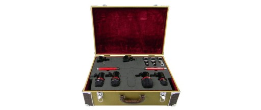 Zestaw 6 mikrofonów do perkusji – MONDO [stopa], ADM [werbel], 2 x ATOM [tomy], 2 x mikrofony overhead CK -1 [kardioidalne], 3 x PK1 [uchwyt montażowy na rant], 6 x metalowe uchwyty antywstrząsowe, walizka