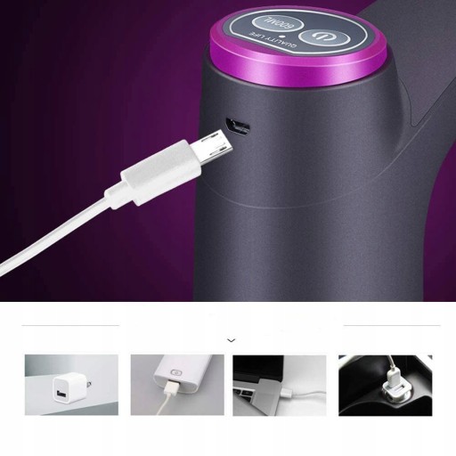 - elektryczna pompka do butelek z wodą może być cicha dzięki wskaźnikowi baterii i redukcji hałasu.