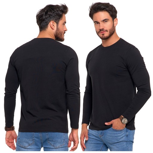 CZARNA KOSZULKA MĘSKA Z DŁUGIM RĘKAWEM MORAJ - S