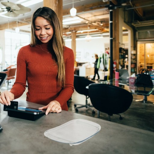 Taka tacka to idealne miejsce na reklame Twojego biznesu. Klienci za każdym razem gdy będą odbierać resztę zawieszą wzrok na umieszczonym w środku tacki banerze reklamowym.