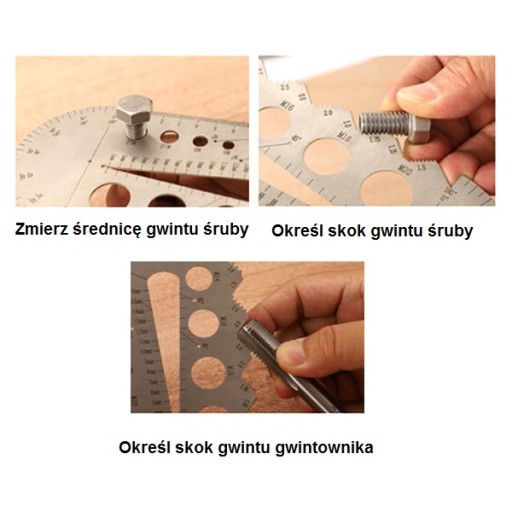 Sprawdzian szablon pomiarowy MultiFunction DASQUA ma bardzo dużo zastosowań. Do jego najważniejszych funkcji należą: sprawdzenie rozmiaru śruby, sprawdzenie średnicy narzędzia, określenie skoku gwintu, sprawdzenie grubości podkładki, zmierzenie kąta itp. Jest to niezbędny sprawdzian, który znajdzie swoje zastosowanie w obróbce metali, drewna, w przemyśle motoryzacyjnym itp.