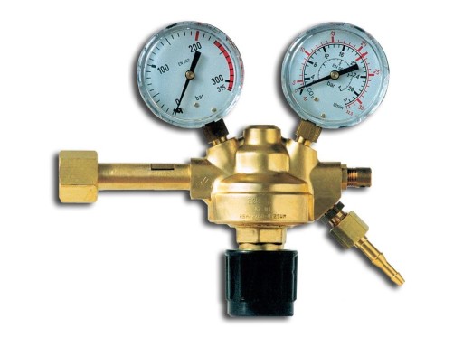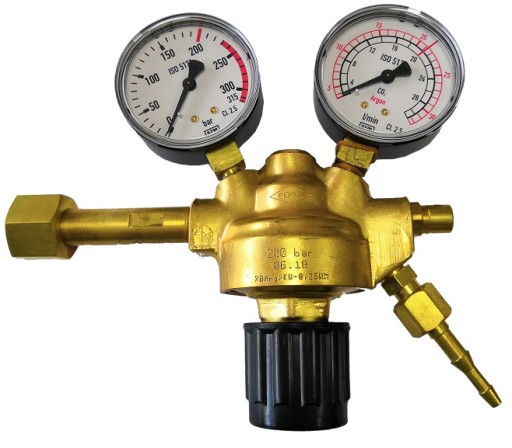 Reduktory butlowe jednostopniowe ze wskaźnikami manometrycznymi pozwalają na obniżenie ciśnienia gazów pobieranych z butli i pomiar ich wypływu na wylocie reduktora. Reduktory te, w miejsce manometru ciśnienia wylotowego, wyposażone są we wskaźniki manometryczne przepływu gazu wyskalowane w dm3 /min w dwóch podziałkach tj. dla argonu i dwutlenku węgla. Maksymalne ciśnienie przy przepływie 20 dm3 /min wynosi 2,5 bar (0,25 MPa). ZASTOSOWANIE Reduktory butlowe ze wskaźnikiem manometrycznym stosowane są do prac spawalniczych przy spawaniu w osłonach gazów ochronnych dwutlenku węgla i argonu. Przy spawaniu w osłonie argonu i dwutlenku węgla, reduktory posiadają wymagane przepustowości tj. max 20 dm3/min.