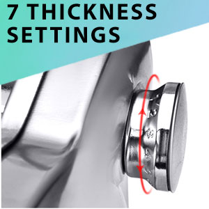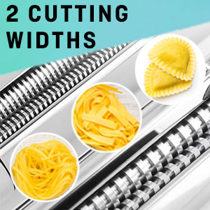 MASZYNA DO MAKARONU Z 7 REGULOWANYMI USTAWIENIAMI GRUBOŚCI: Sekret doskonałego dania z makaronem polega na wyborze odpowiedniej grubości dla każdego rodzaju makaronu. Nasza ręczna maszynka do makaronu posiada 7 ustawień grubości, które pozwalają Ci cienko rozwałkować ciasto (na ravioli) lub grubiej (na lasagne). Wałki do makaronu skutecznie wyrównują ciasto na preferowaną grubość, a noże kroją ciasto na paski makaronu. Otrzymaj najlepszy rezultat i zbierz komplementy od swoich gości.