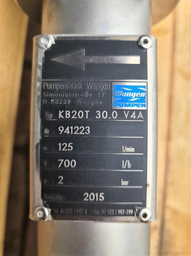 Posiadamy do zaoferowania nowej generacji pompę śrubową-beczkową Wangen KB20T