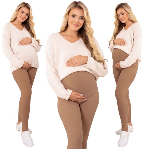 - Legginsy wykonane są z miękkiej, oddychającej bawełnianej dzianiny, co zwiększa przyjemność użytkowania. Dzięki temu, że jest ona rozciągliwa, ze spokojem możesz chodzić w nich przez całą ciąże i po urodzeniu maluszka.