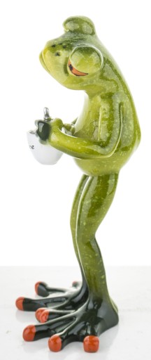 ФИГУРКА ЛЯГУШКА С КОФЕ, УСТАЛАЯ СОННАЯ, 15 СМ