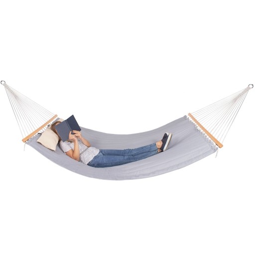 Hamak powstał z naturalnych materiałów, w tym z bawełny, która gwarantuje maksymalną przepuszczalność powietrza. Lekki, a jednocześnie wytrzymały materiał idealnie dopasowuje się do ciała sprawiając, że użytkownik w pełni na nim wypocznie i się zrelaksuje.