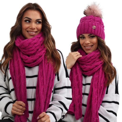 KOMPLET: CZAPKA + SZAL ZIMA 2722 MALINOWY