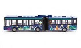 Autobus przegubowy wykonany z metalowych i plastikowych części odzwierciedla wygląd pojazdu rzeczywistego. Gumowe opony i przegub środkowy umożliwiają swobodne skręcanie autobusu. Doskonała zabawka dla małych kierowców.