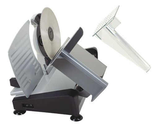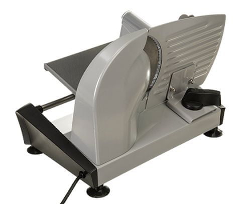 Nasza krajalnica jest nie tylko funkcjonalna, ale do tego dobrze prezentuje się na kuchennym blacie. Decydując się na elektryczny sprzęt czasami mamy obawy przed jego używaniem. Zastosowane rozwiązania w tym urządzeniu, zapewniają bezpieczeństwo i wygodę użytkowania! Antypoślizgowe nóżki ułatwiają korzystanie z niej bez obaw w każdych warunkach. Składany stolik i wyjmowany popychacz pomagają utrzymać w miejscu produkty, które chcemy pokroić. Jednocześnie taka budowa ułatwia szybkie czyszczenie urządzenia! Nie potrzebujesz żadnych dodatkowych narzędzi, aby złożyć i rozłożyć krajalnicę. Ostrze usuwa się wykorzystując do tego specjalne pokrętło do wyjmowania noża, które zabezpiecza przed samodzielnym odłączeniem się go od krajalnicy.