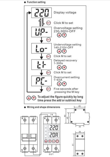 Regulowane Zabezpieczenie napięciowe i prądowe 63A DIN