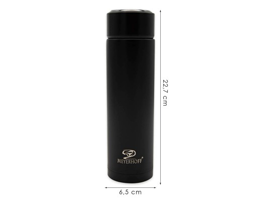 Kubek termiczny renomowanej marki Meyerhoff został wykonany z wysokiej jakości stali nierdzewnej z izolacją próżniową, która pozwala na długo utrzymać temperaturę ciepłych oraz zimnych napojów wewnątrz termosu. Praktyczny system otwierania i zamykania termosu za pomocą odkręcanej pokrywki sprawia, iż korzystanie z termosu jest łatwe i wygodne. Idealny na różnego rodzaju wycieczki i podróże. Całość wykonana jest z przyjaznych środowisku materiałów i przystosowana jest do kontaktu z napojami. Nie nadaje się do zmywarek.