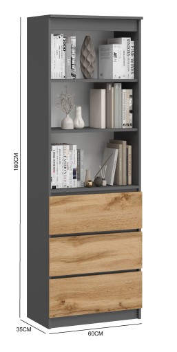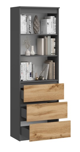 REGAŁ MAJA KSIĄŻKI 3 SZUFLADY GRAFIT, DĄB WOTAN