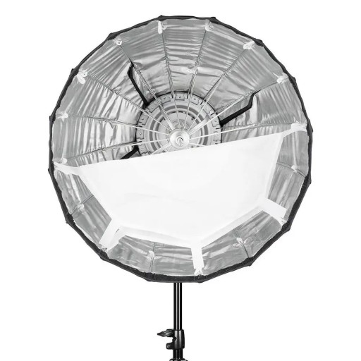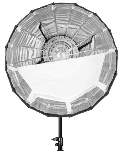 Przypominająca kielich tulipana, bardzo głęboka czasza tego softboxa to jedna z jego ważnych cech. Ten kształt sprawia, że użytkownik może bardzo precyzyjnie kontrolować to, gdzie pada światło. Jeżeli jest taka potrzeba Hexadecagon może być używany także z plastrem miodu (dostępnym oddzielnie).