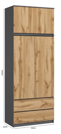 ВЕРХНЯЯ ЧАСТЬ ГАРДЕРОБА, ГРАФИТ МОНИЯ, ДУБ ВОТАН