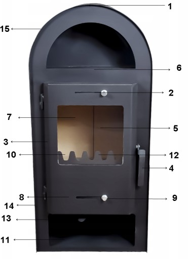6. Deflektor - czyli tzw. „półka dymowa” umieszczona w górnej części pieca. Uzyskiwane w tym procesie dodatkowe ciepło zwiększa efektywność i wydajność pieca. Ochłodzone i mniej zanieczyszczone spaliny trafiają do komina. Według wyliczeń producentów piecy deflektor zwiększa wydajność o około 30%.
