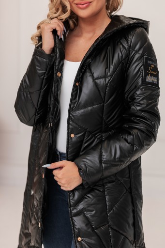 Jeśli płaszcz będzie pognieciony, można go uprasować parownicą, lub żelazkiem poprzez bawełnianą pieluszkę.