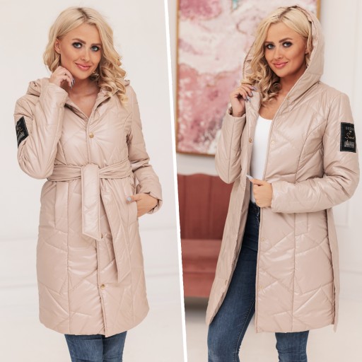 ДЛИННОЕ СТЕГАНОЕ ПАЛЬТО С ПЕРЕХОДНЫМ ПОЯСОМ XXL