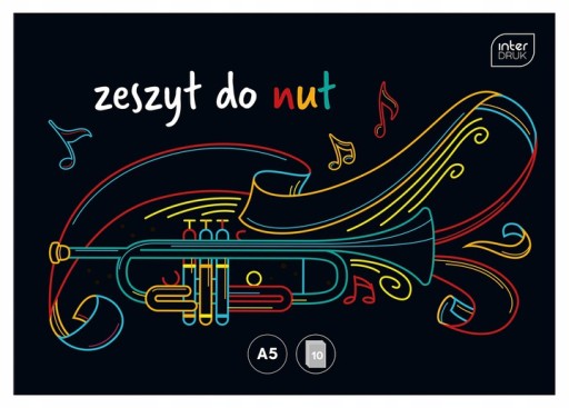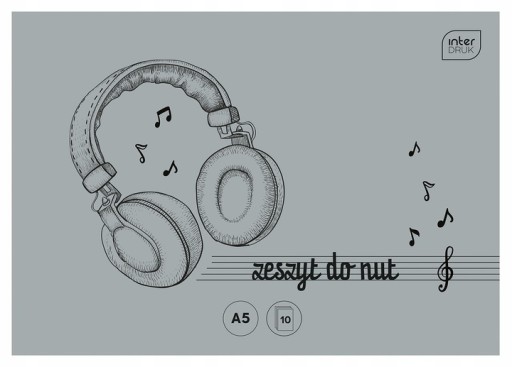 Zeszyt do muzyki przeznaczony do zapisywania nut z tradycyjną pięciolinią. Układ poziomy z kartkami łączonymi zszywkami. Okładka zabezpieczona lakierem UV z modnymi, muzycznymi wzorami.