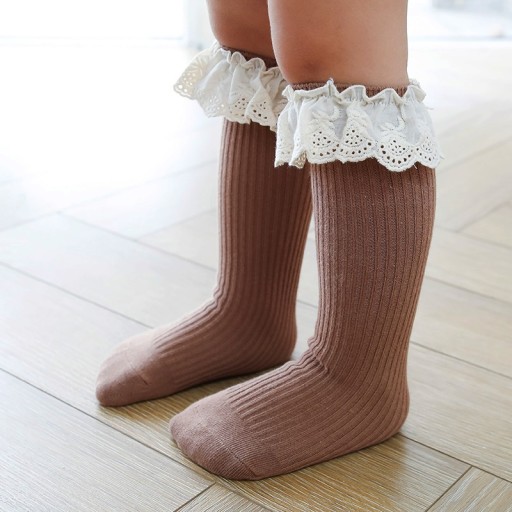 Piękne prążkowane podkolanówki z haftowaną falbanką
