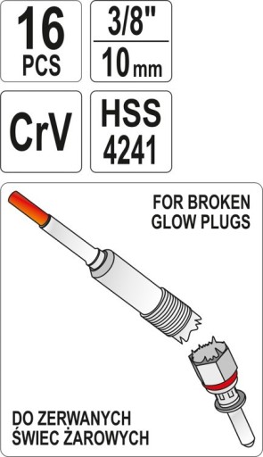 Zawarte w zestawie narzędzia pozwalają na usunięcie uszkodzonej świecy żarowej bez konieczności demontażu głowicy z silnika. Przystosowany do świec żarowych 8,0 i 10,0mm