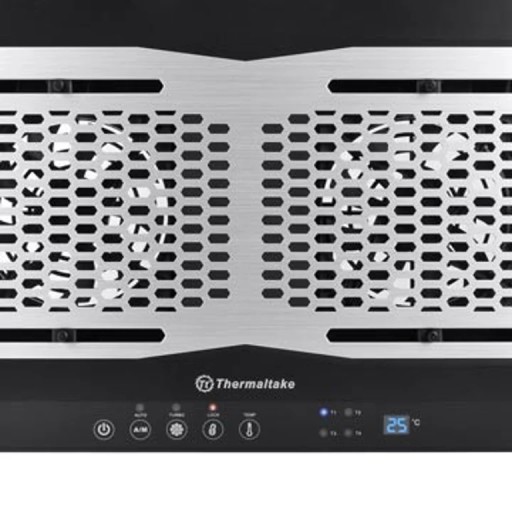Thermaltake CL-N002-PL12BL-A. Średnica czaszy wentylatora: 12 cm, Prędkość obrotowa (min): 1000 RPM, Prędkość obrotowa (max): 1300 RPM. Kolor produktu: Aluminium, Czarny, Materiały: Aluminium, Plastik. Szerokość produktu: 390 mm, Głębokość produktu: 277,5 mm, Wysokość produktu: 49,3 mm