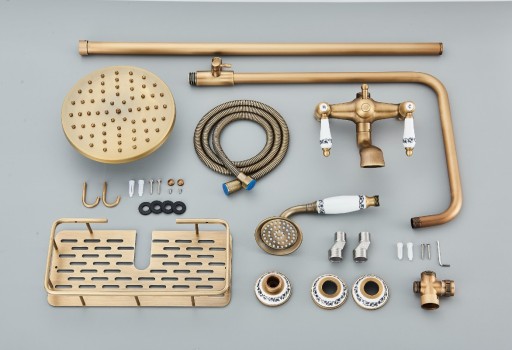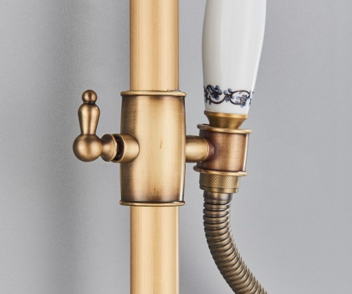 - Detale i ozdoby: Styl retro jest bogaty w detale i ozdoby. Mogą to być rzeźbienia, zdobienia, ozdobne krawędzie lub motywy roślinne. Zestaw prysznicowy natynkowy retro posiada ozdobne elementy.