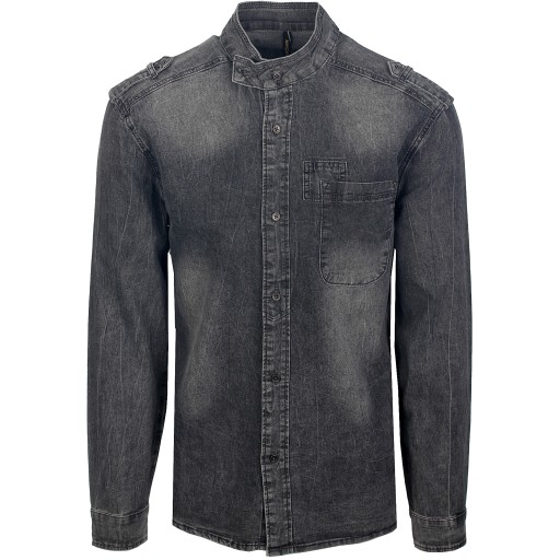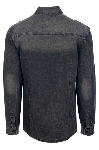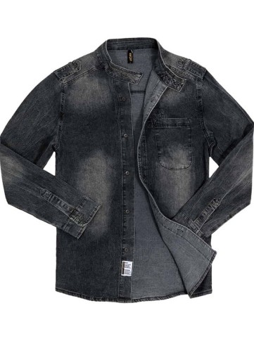 KOSZULA MĘSKA JEANSOWA STÓJKA PAGONY GRAFIT