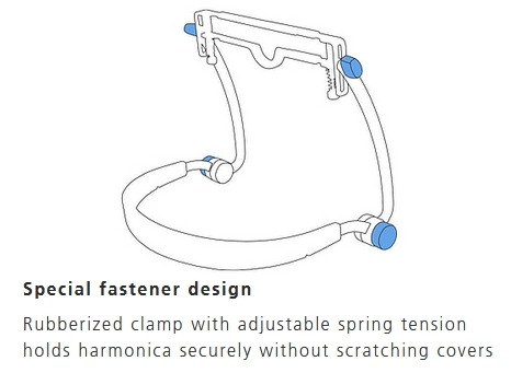 Granie na harmonijce bez użycia rąk nigdy nie było tak proste i wygodne. Harmonijka FlexRack pozwala Ci bezproblemowo zmieniać pozycję, kąt i wysokość bez uzycia żadnych dodatkowych narzędzi i łatwo wymieniać Twój instrument przez zwykłe wsunięcie go z przodu. Dzięki wykorzystaniu sprężyn i gumowych łączników Twoja harmonijka nie jest zagrożona przez zarysowania lub wygięcia, a ergonomiczny kształt szyjki zapewnia pełny komfort podczas noszenia.