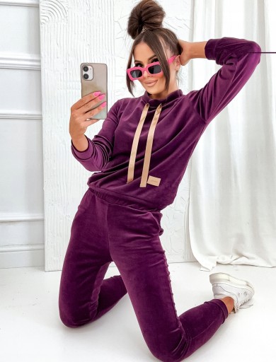 DRES KOMPLET DAMSKI WELUROWY BORDOWY PREMIUM L