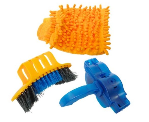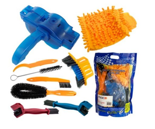 - uniwersalny zestaw akcesoriów do czyszczenia, mycia roweru lub motoroweru ( 9 elementów )