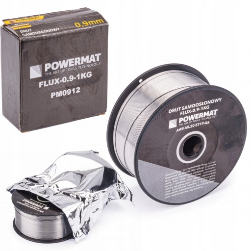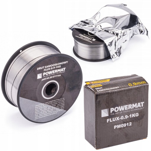 Drut proszkowy samoosłonowy fi 0,9 mm / 1 kg E71T-GS firmy Powermat przeznaczony jest do spawania stali węglowych zwykłej i podwyższonej wytrzymałości nie przekraczającej 510 MPa.