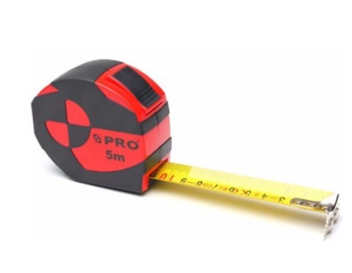 - Miara wyposażona w zderzak absorbujący uderzenie taśmy podczas zwijania.