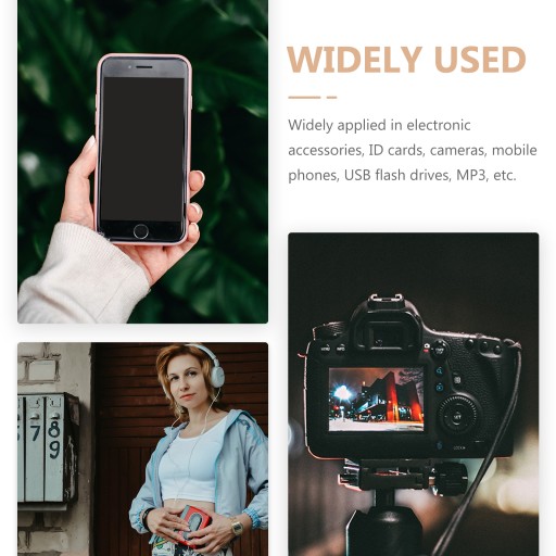 Szeroko stosowane w akcesoriach elektronicznych, dowodach osobistych, aparatach fotograficznych, telefonach komórkowych, dyskach flash USB, MP3 itp.