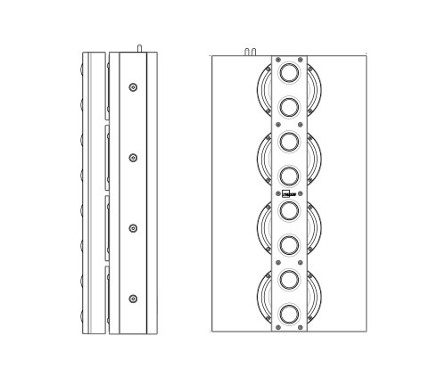 - Głośnik średniotonowy: 4 sztuki, 115 mm, cewka drgająca 25 mm, stożek aluminiowy, magnes wentylowany