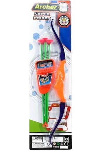 - Zestaw zawiera:plastikowy łuk3 bezpieczne strzały na przyssawkikartonową tarczę