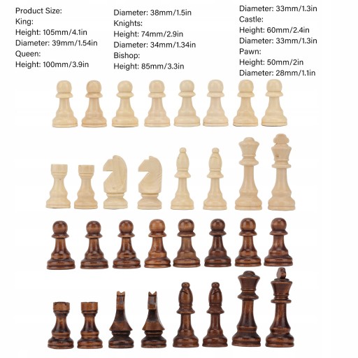 2. 2 kolory: Szachy zawierają 16 pionków w każdym z 2 kolorów. Kawałki są średniej wielkości i mogą pasować do szachownicy, aby cieszyć się zabawą z gry w szachy.