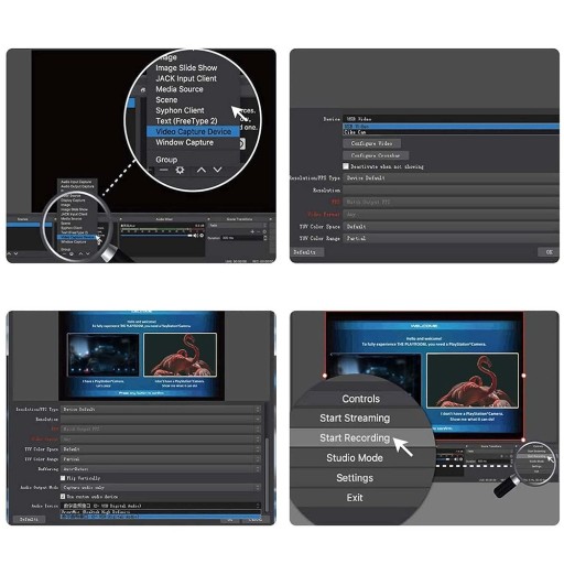 - Uruchom program OBS, dodaj źródło dostępu na „+” i urządzenie do przechwytywania obrazu.