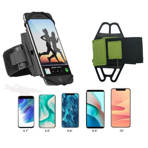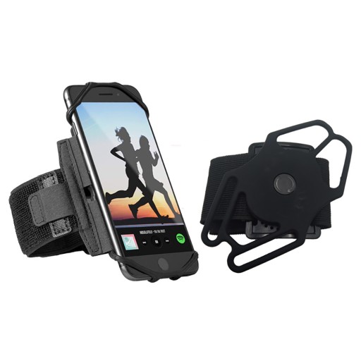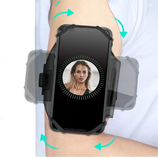 Opaska posiada pasek na ramię mocowany na rzep , otwory na odbiór/przewód zasilania, a także spejalne rozciągliwe mocowanie zapewnia stabilną pozycję urządzenia.