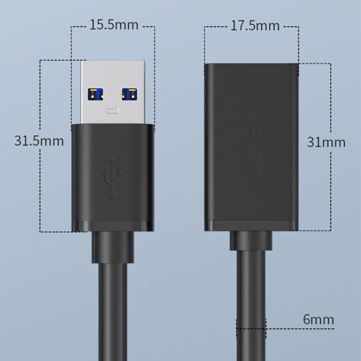 Ten kabel pozwala na przesyłanie danych z szybkością do 5 Gbps . Jest wykonany w technologii USB 3.0 i posiada wtyczkę USB Typ A (męski) i USB Typ A (żeński) . Jest to możliwe z zasilaczem USB 2.0, dzięki czemu można podłączyć go do starszych urządzeń wyposażonych w ww. wykonane.