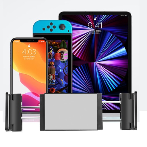 Uchwyt do obsługi tabletu, smartfona, e-czytnika oraz urządzeń. Konstrukcja składana pozwala na ustawienie kąta i odległości dostępu do treści. Możliwość regulacji urządzenia w pionie. Możliwość przybliżenia uchwytu z mobilnym do siebie, aby móc nim sterować podczas gry lub przeglądania filmów. Uniwersalne mocowanie zagłówkowe - zaciski są rozsuwane dzięki czemu pasuje do każdego zagłówka.