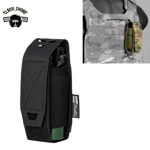 - Kompatybilność: Kompatybilny ze standardowymi platformami taśmowymi MOLLE, można przymocować do kamizelki i plecaka