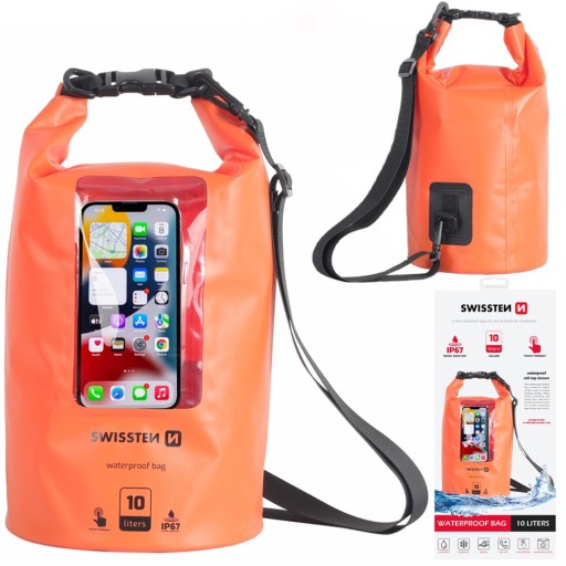 ✅ Wodoodporna torba Swissten 10 l z wewnętrzną kieszenią na smartfon - idealna dla żeglarzy i wędkarzy
